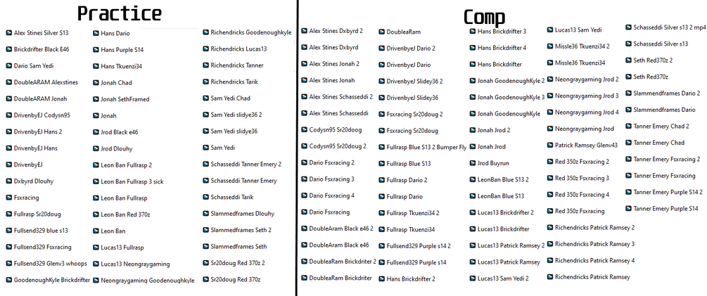 ALL Videos have been tagged to the best of my abilities of which driver is in each one.